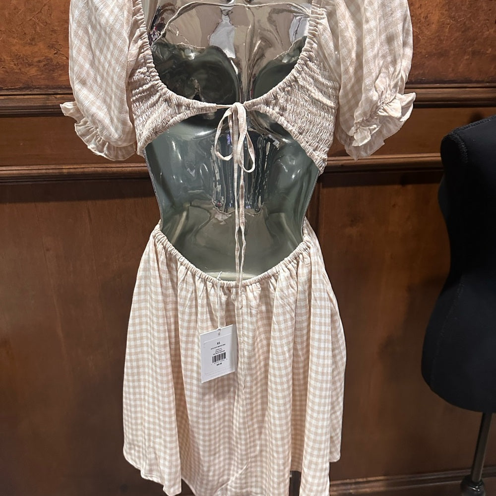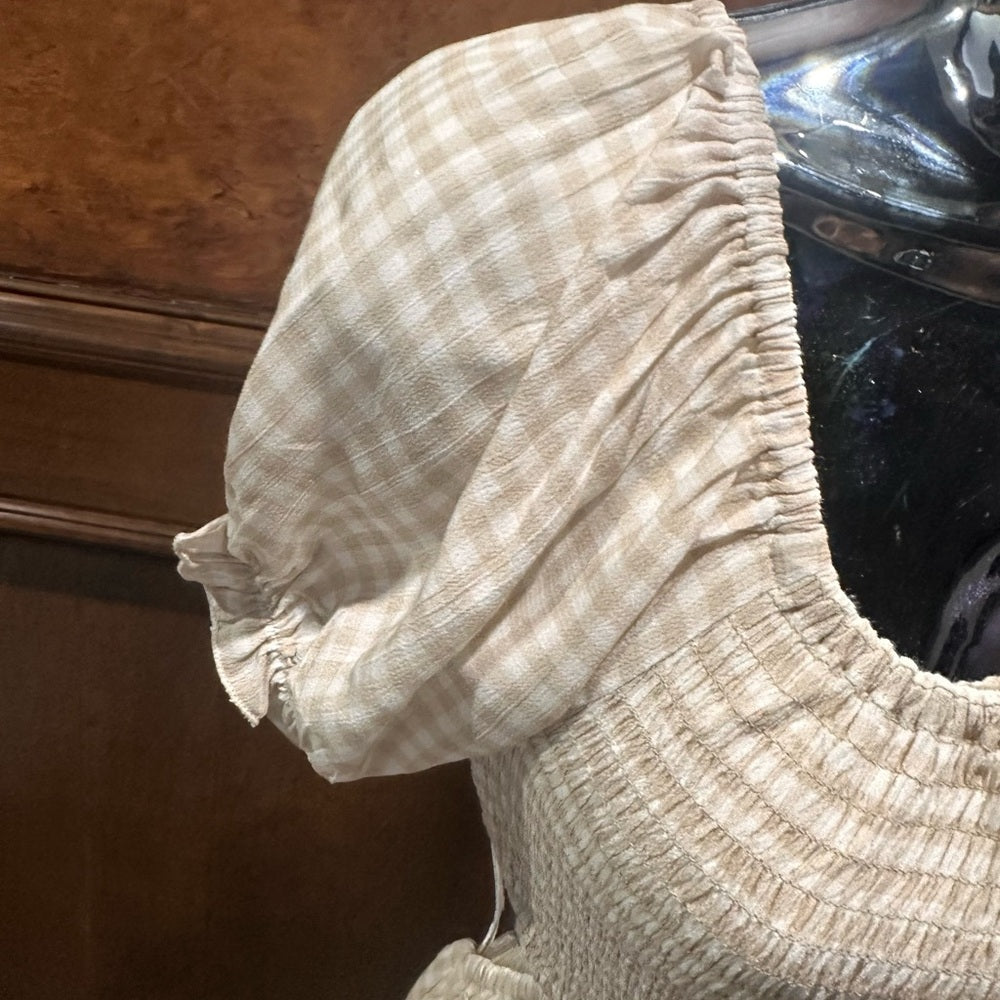 NWT SIZE XS Rachel Parcell Beige Checkered Puff Sleeve Mini Dress