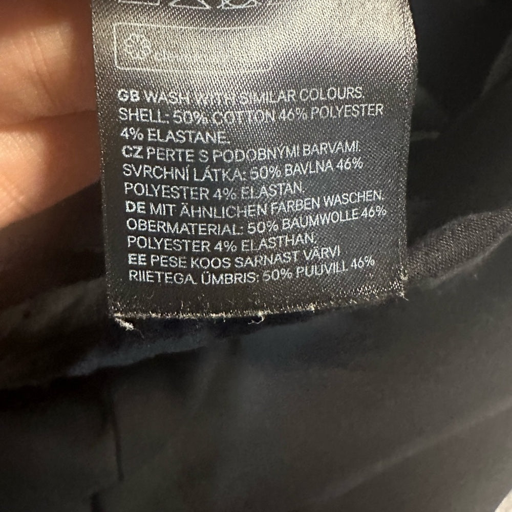 Experience the refined style of H&M's black straight leg pants, designed with a high-waisted fit for a modern silhouette. These pants are crafted from a solid black fabric, offering a sleek and polished look ideal for formal occasions.