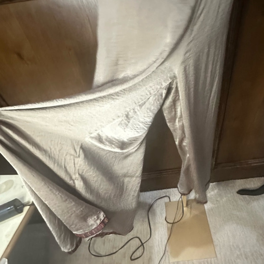SIZE M Cream Pleated Maxi Wide Leg Pants for Casual Wear