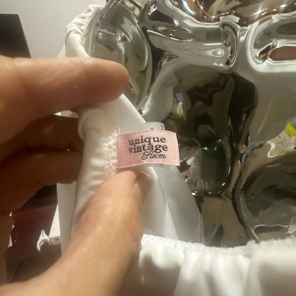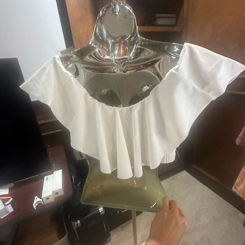 Unique Vintage White Off-Shoulder Bikini Top