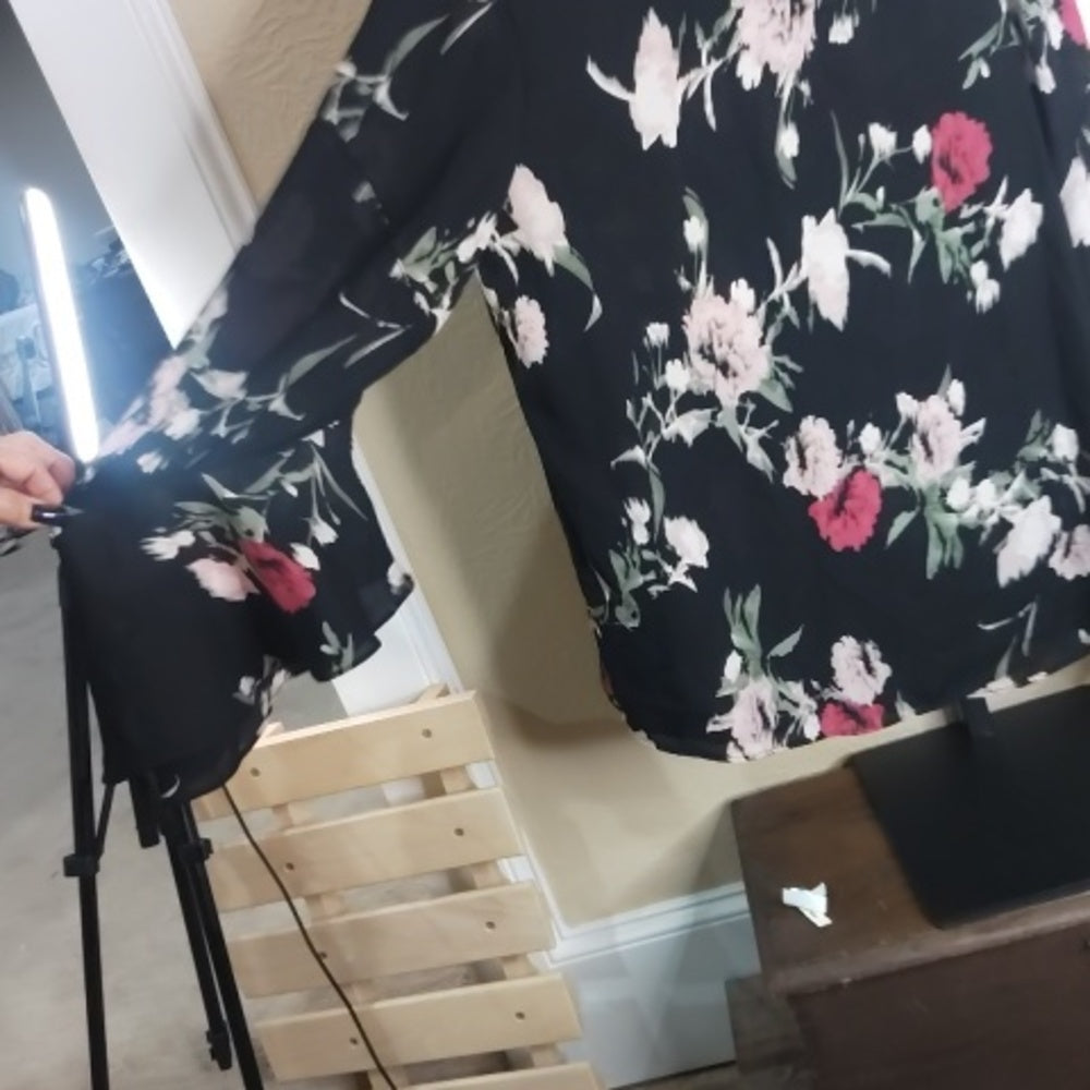 Vince Camuto Blue and Black Ruffled Bell Sleeve Blouse